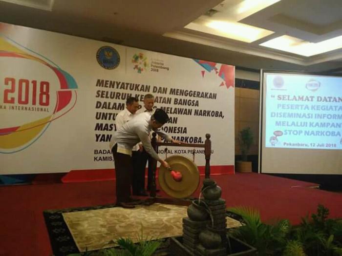 Pekanbaru – Lintasriaunews.com – Badan Narkotika Nasional Kota (BNNK) Pekanbaru besama Pemerintah Kota Pekanbaru menggelar kegiatan seminanr diseminisasi informasi kampanye stop narkoba di Hotel Grand Jatra Pekanbaru,Kamis (12/7)