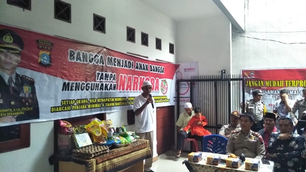 “Narkoba musuh kita bersama. karena penyalahgunaan narkoba dapat merusak. jaga dan lindungi keluarga kita dari bahaya narkoba,” ucap Wakapolsek