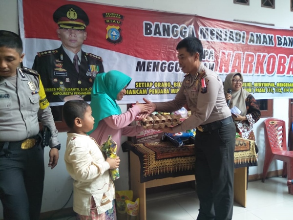 “ Bantuan ini berasal dari sumbangan personel Polsek Pekanbaru Kota dan donatur yang dihimpun setiap Jum’at secara sukarela “