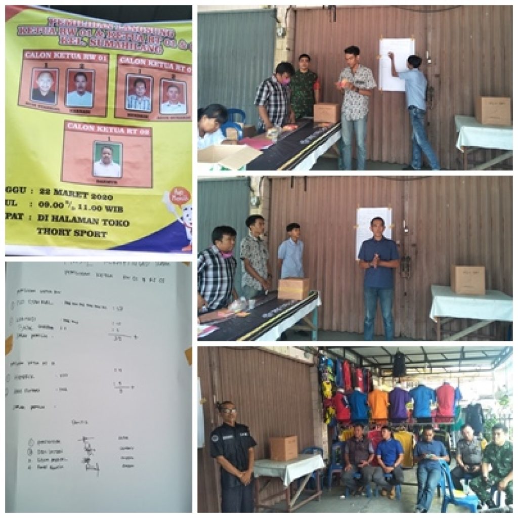 Pada pemilihan ini,ada tiga calon kandidat Ketua RT dan dua calon kandidat Ketua RW dilaksanakan pemilihannya secara serentak dimulai dari jam 08.00 wib hingga 12.00 Wib,kegiatan ini mendapat pengamanan dari Bhabinkamtibmas dan Babinsa Kelurahan Sumahilang.
