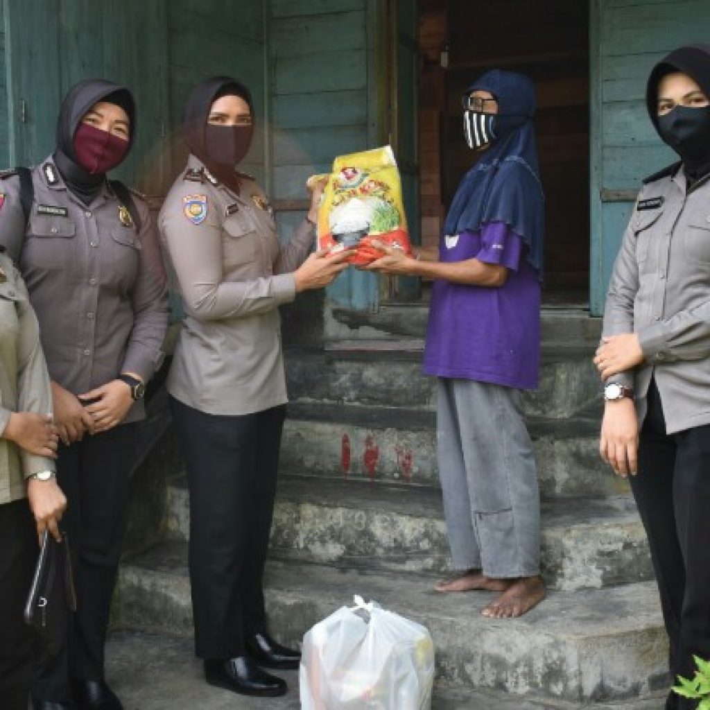 Polwan Polres Kampar Peduli, Sebar Bantuan Untuk Warga Kurang Mampu Terdampak Covid-19