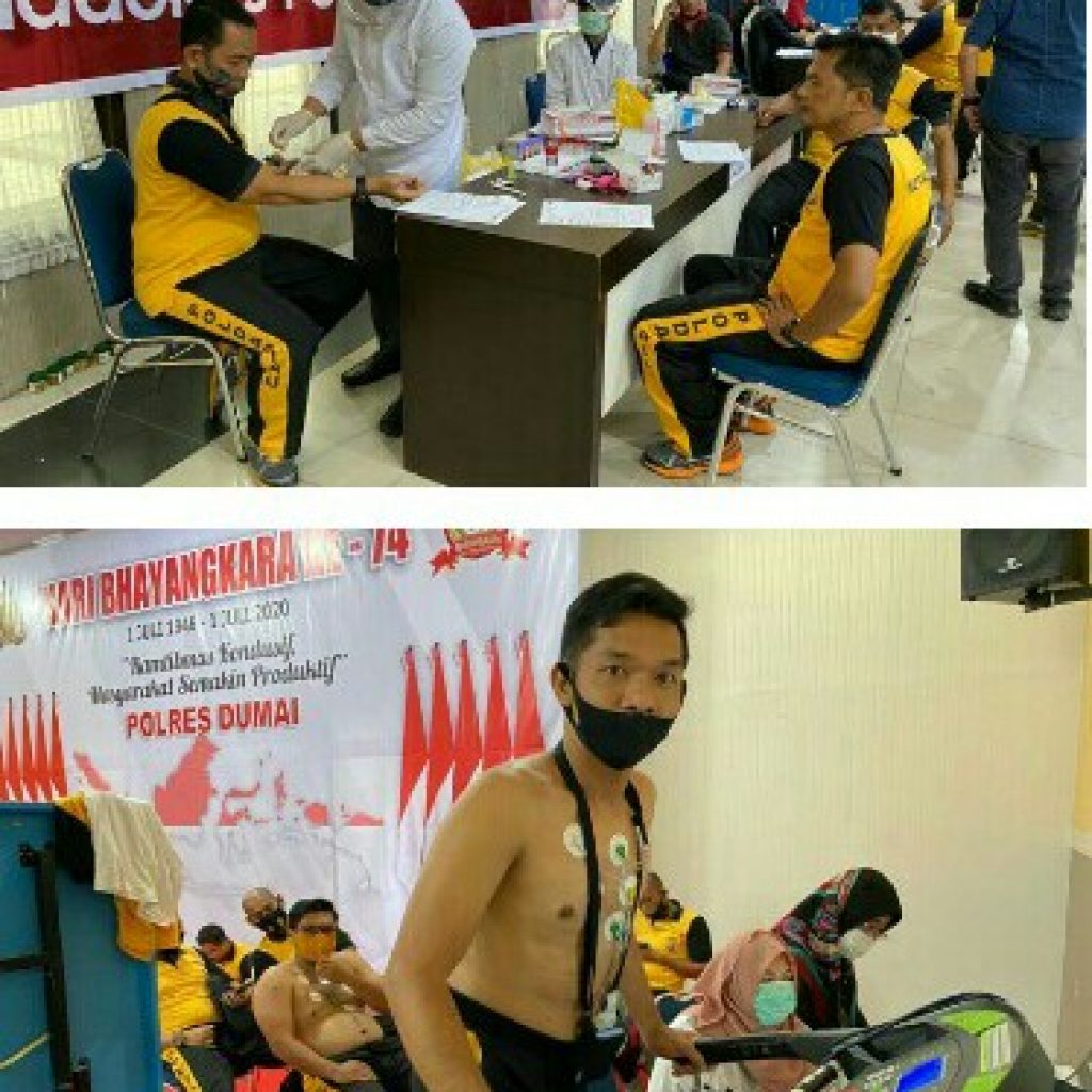 “Pemeriksaan Kesehatan (Rikkes) Berkala oleh Bidang Dokter Dan Kesehatan (Biddokes) Polda Riau diikuti oleh 77 Personil Polres Dumai meliputi Pengecekan Darah Lengkap, Rontgen, Pengecekan Fisik Seperti Tinggi Badan, Berat Badan dan Lingkar Pinggang, Pemeriksaan Gigi, Observasi Treadmill dan Pengecekan EKG,” jelas AKBP Andri Ananta Yudhistira, S.I.K, M.H.