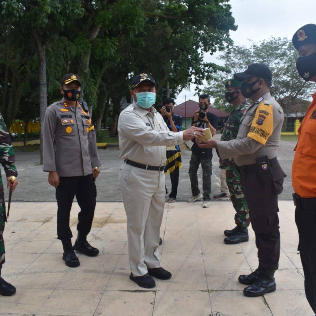 Kegiatan diawali Apel Pelepasan Petugas Pendistribusian Masker dengan Pimpinan Apel Bupati Kampar H. Catur Sugeng Susanto SH, didampingi Kapolres Kampar AKBP Mohammad Kholid SIK serta Dandim 0313/ KPR Letkol Inf Leo Sinaga SIP, dengan menerapkan Protokol Kesehatan.