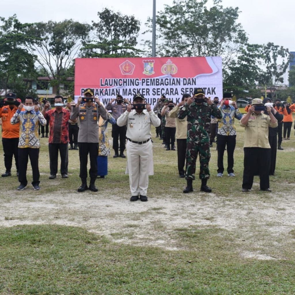 Bupati Kampar Didampingi Kapolres Serta Dandim Lounching Pembagian Masker Serentak Di Kabupaten Kampar