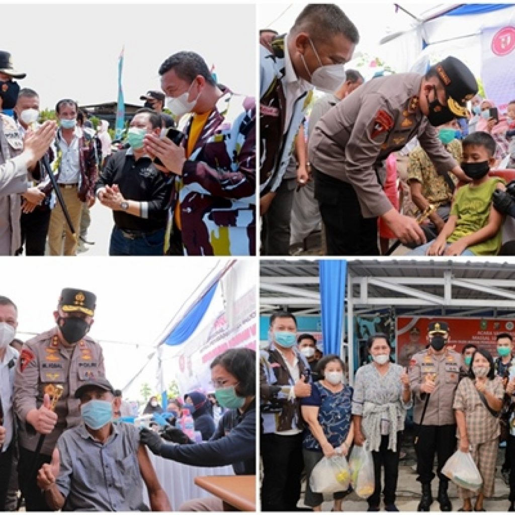 Sembari meninjau pelaksanaan vaksin, Irjen Iqbal, didampingi Ketua DPD IPK Riau, Kasten Harianja, berjalan mendatangi warga yang sedang di vaksin.