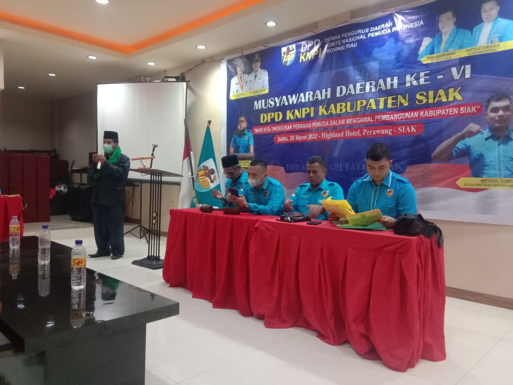 SIAK, LintasRiauNews.com — Musyawarah Daerah Ke -VI Dewan Pimpinan Daerah Komite Nasional Pemuda Indonesia (DPD KNPI ) Kabupaten Siak yang dilaksanakan di Highland Hotel Perawang, Sabtu (26/3/2022) berjalan lancar dan aman