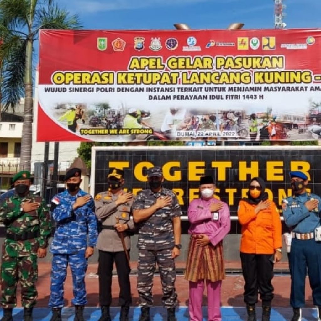 DUMAI,LintasRiauNews.com.-Asisten Pemerintahan dan Kesra Sekretariat Daerah Kota Dumai Yusrizal, S.Sos, M.Si menghadiri Apel Gelar Pasukan Operasi Ketupat Lancang Kuning-2022 yang ditaja oleh Polres Dumai, bertempat di Halaman Mapolres Dumai, Jumat (22/4/2022).