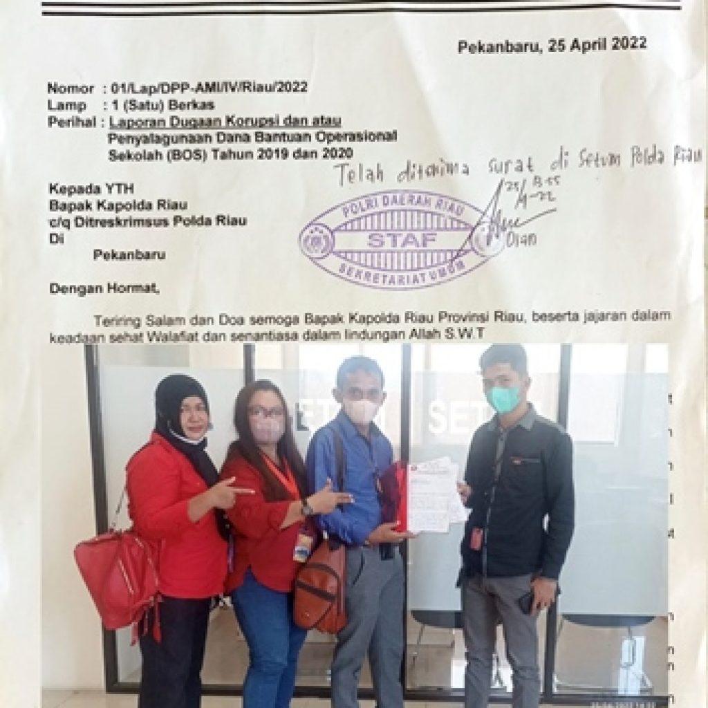 Sementara Veby Antoni Ketua OKK Dewan Pimpinan Pusat (DPP) Aliansi Media Indonesia, ” laporan yang diberikan baik kepada Markas Polda (Mapolda) Riau dan Kejaksaan Negeri (Kejadir) Pekanbaru Provinsi Riau, kepedulian AMI terhadap dunia Pendidikan agar Dana BOS yang diberikan dan merupakan Program Pemerintah Pusat melalui Kementrian Pendidikan dan Kebudayaan Republik Indonesia pengunaannya tepat sasaran, bukan dugaan digunakan untuk meraup keuntungan Pribadi maupun golongan.”