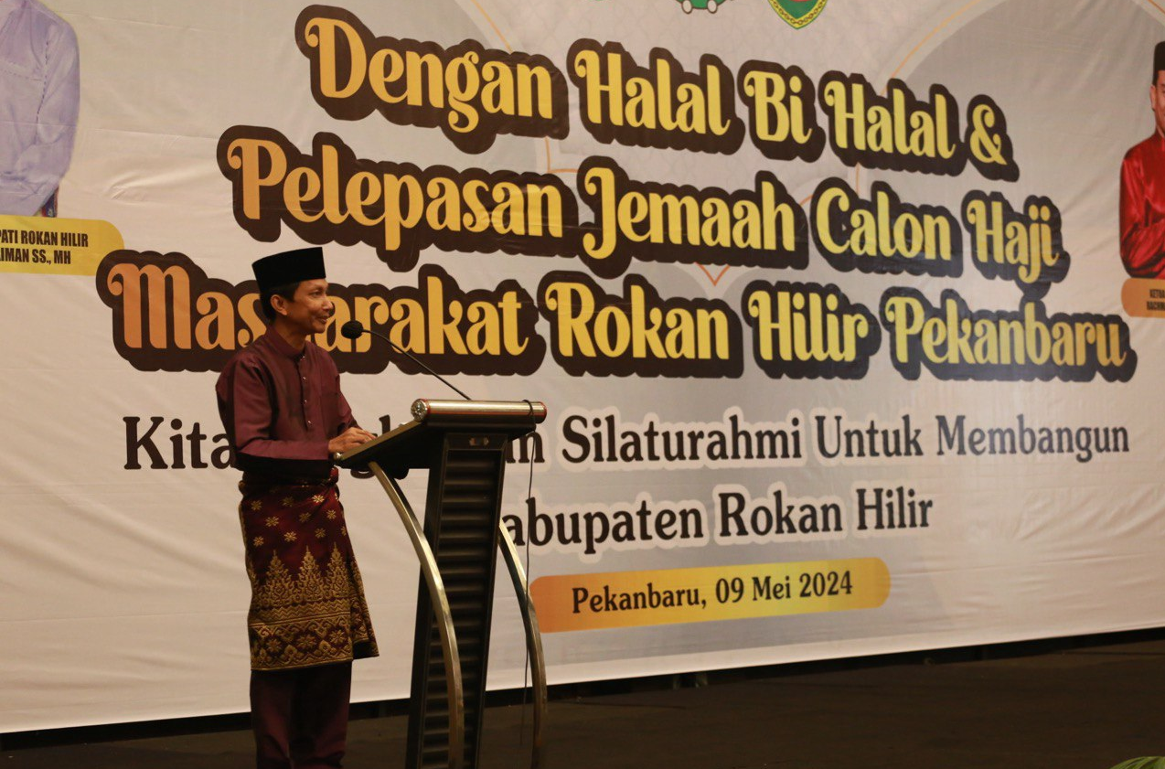 PEKANBARU ,LintasRiauNews.com — Penjabat (Pj) Gubernur Riau yang diwakili oleh Pj Sekretaris Daerah (Sekda) Provinsi Riau, Indra menghadiri halal bi halal sekaligus pelepasan Calon Jemaah Haji (CJH) Rokan Hilir (Rohil) yang ada di Pekanbaru. Acara ini diselengarakan di Hotel Pangeran Pekanbaru, Kamis (9/5/2024).