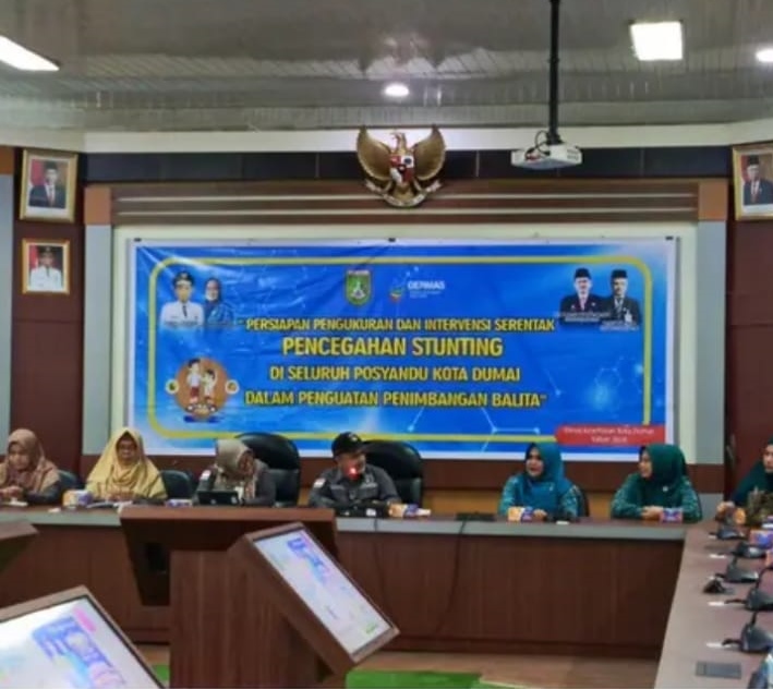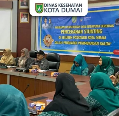 DUMAI,LintasRiauNews.com — Dalam Rangka Mendorong Percepatan Penurunan stunting, pemerintah menyelenggarakan Pengukuran dan Intervensi serentak bagi sasaran stunting terutama bayi, balita ibu hamil dan calon pengantin di Posyandu. Salah satu upaya pencegahan stunting adalah meingkatkan cakupan layanan yang diterima sasaran. Posyandu sebagai Lembaga Kemasyarakatan menjadi pusat layanan dasar terutama dalam pemantauan tumbuh kembang bayi, balita dan pemeriksaan ibu hamil.