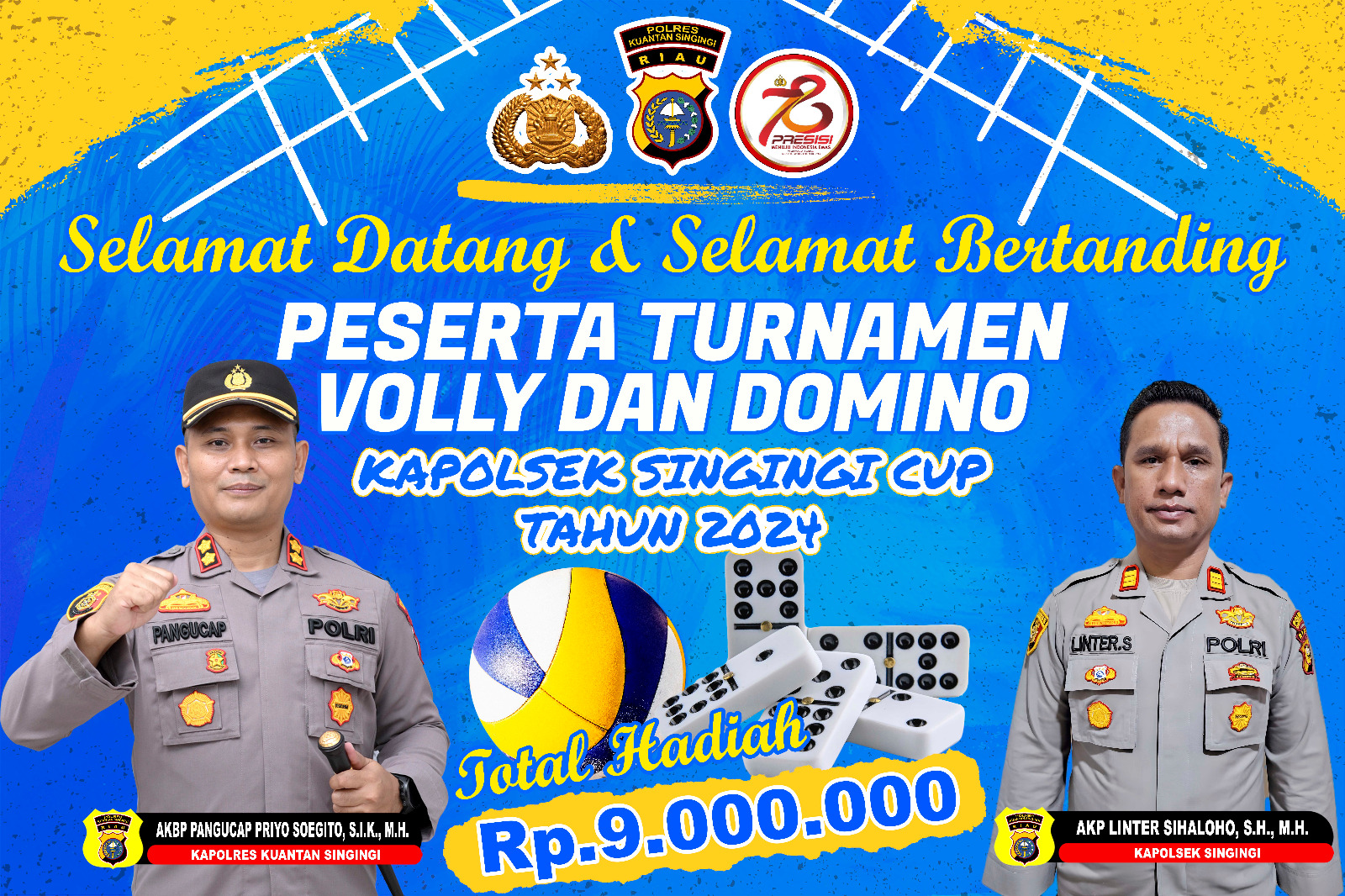 Kapolres Kuansing AKBP Pangucap Priyo Soegito, S.I.K.,M.H., melalui Kapolsek Singingi, AKP Linter Sihaloho, S.H, M.H, menyampaikan “Tujuan diadakannya turnamen bola voli ini adalah untuk memeriahkan HUT Bhayangkara ke-78. Selain itu, turnamen ini juga diikuti oleh seluruh instansi pemerintahan se-Kecamatan Singingi, yang bertujuan untuk menjalin hubungan baik antar instansi menjelang Pilkada tahun 2024,” ujar Kapolsek.