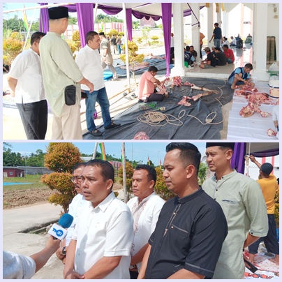 Setelah pelaksanaan sholat Id, kegiatan dilanjutkan dengan pemotongan hewan kurban yang terdiri dari 2 ekor sapi dan 4 ekor kambing. Kegiatan ini berlangsung dengan penuh khidmat dan dihadiri langsung oleh Kepala Kantor Wilayah Kementerian Hukum dan HAM Riau, Bapak Budi Argap Situngkir, dan ibu Ketua Darmawanita Persatuan Kemenkumham Provinsi Riau, Ibu Monalisa Argap yang juga tergabung sebagai panitia qurban, serta Kepala Lapas Narkotika Rumbai, Bapak Henri Alfa Edison Damanik.