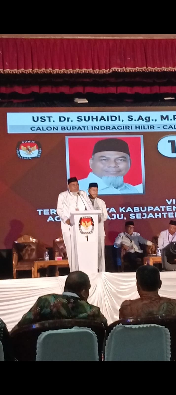 INHIL, LintasRiauNews. com — Pasangan calon Bupati dan wakil bupati dari nomor urut 1 , DR.Suhaidi – Syamsudin Uty dengan slogan USSALI dengan semangat dan serius mengikuti Debat Publik Calon Bupati dan Wakil Bupati Indragiri Hilir yang ditaja oleh KPU Inhil Tahun 2024, bertempat di Gedung Engku Kelana, sabtu (16/11/2024) malam.