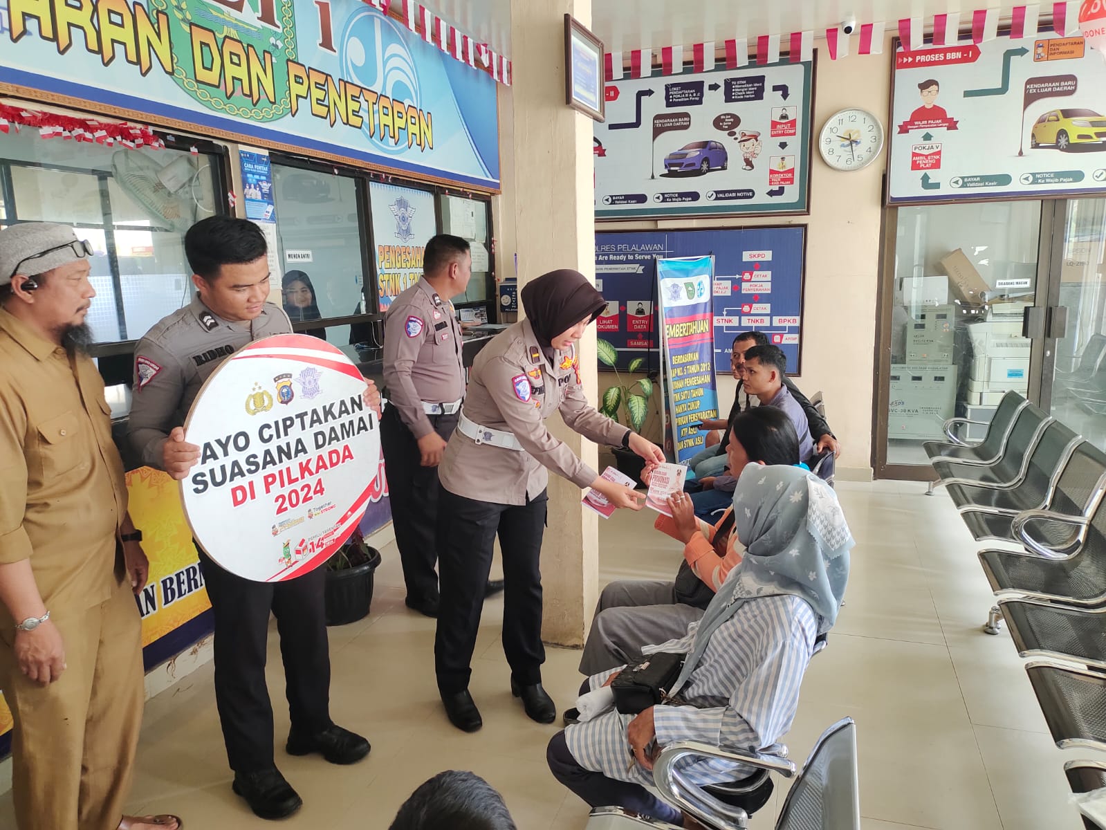 PELALAWAN ,LintasRiauNews.com —Komitmen satlantas Polres Pelalawan Ciptakan Pilkada damai tahun 2024, kepada masyarakat wajib pajak di kantor Dispenda Kabupaten Pelalawan, Rabu (20/11/2024).