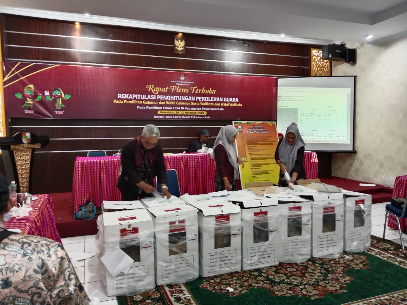 PEKANBARU ,LintasRiauNews.com — Panitia Pemilihan Kecamatan (PPK) Pekanbaru Kota mengadakan rapat pleno terbuka penghitungan perolehan suara pada Pemilihan Gubernur dan Wakil Gubernur Riau serta Pemilihan Walikota dan Wakil Walikota Kota Pekanbaru. Pleno ini berlangsung di Aula Kantor Camat Pekanbaru Kota Jalan Tengku Umar pada Jum”at (29/12/2024) mulai pukul 8.30 Wib