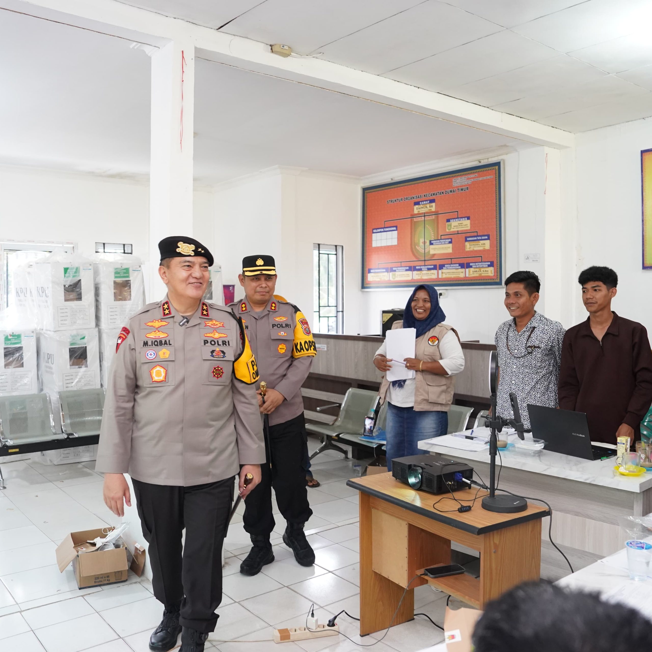 DUMAI ,LintasRiauNews.com — Kapolda Riau Irjen Pol. H. Mohammad Iqbal, S.I.K, M.H., melaksanakan kunjungan ke Kantor PPK Dumai Timur, Kota Dumai, dalam rangka memantau pelaksanaan Pilkada Serentak 2024, (30/11).