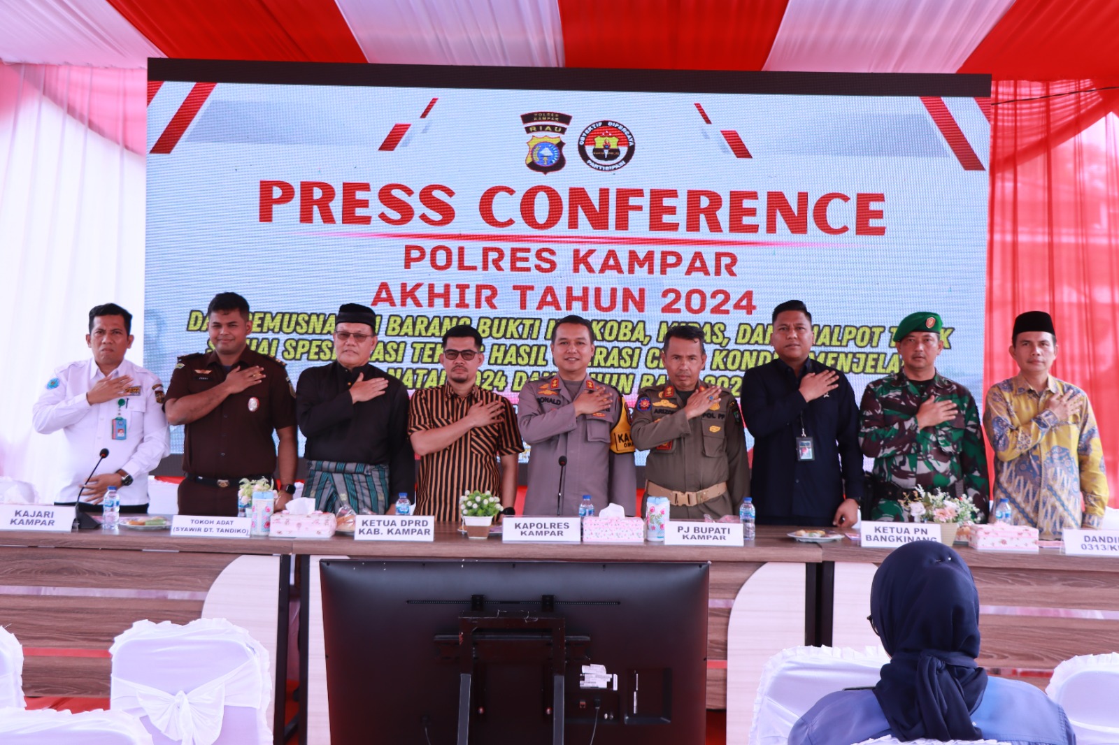 KAMPAR ,LintasRiauNews.com — Polres Kampar menorehkan prestasi gemilang sepanjang tahun 2024 dalam menjalankan tugas memberikan pelayanan prima dan pengayoman kepada masyarakat. Hal ini terungkap dalam press conference akhir tahun 2024 yang diselenggarakan di parkiran Satlantas Polres Kampar pada Senin (30/12/24).