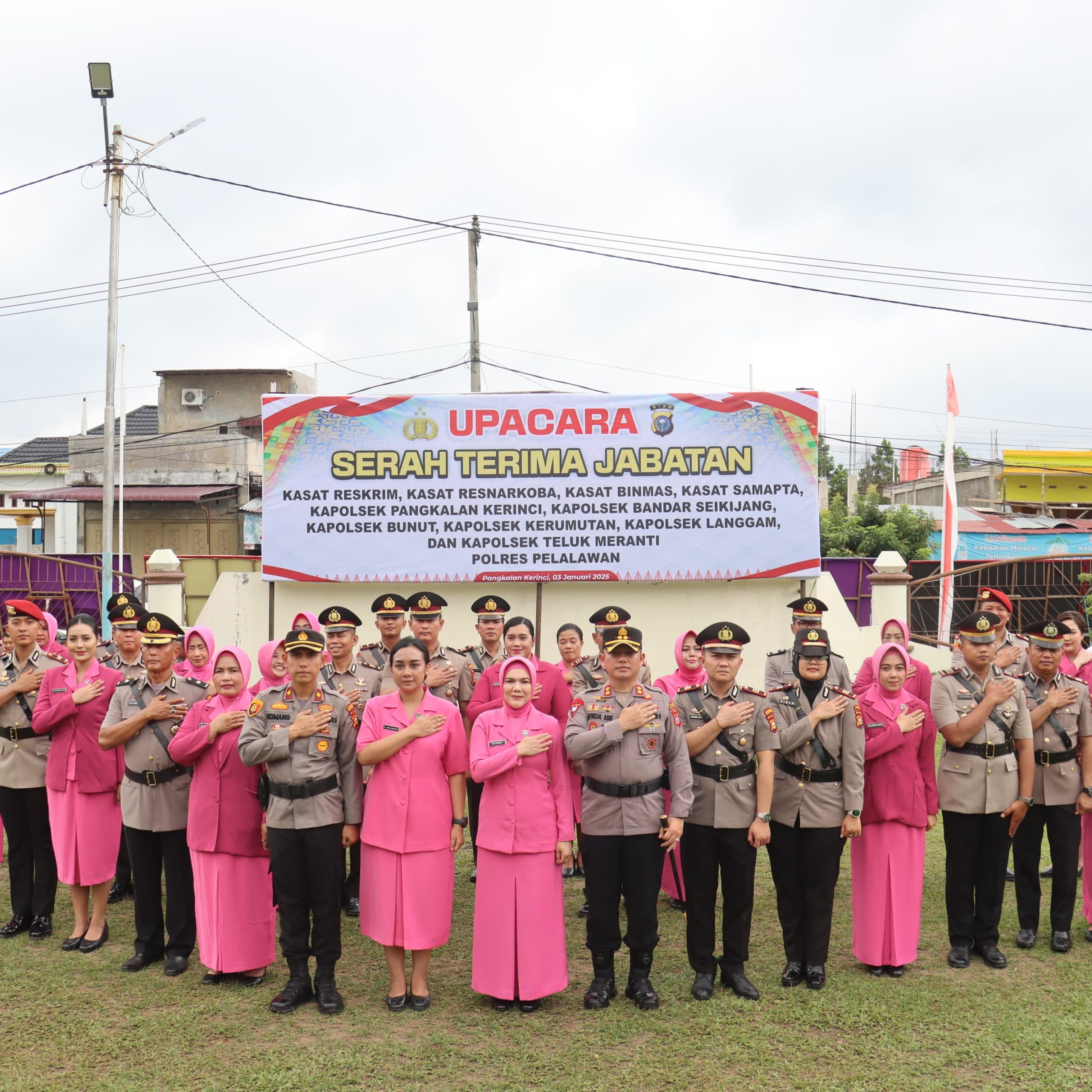 PELALAWAN ,LintasRiauNews.com — Kapolres Pelalawan AKBP.Afrizal Asri.SIK pimpin serah terima jabatan Kasat Reskrim, Kasat Resnarkoba,Kasat Bimas,Kasat Samapta,Kapolsek Pangkalan Kerinci,Kapolsek Bunut,Kapolsek Bandar Seikijang,Kapolsek Kerumutan,Kapolsek Langgam dan Kapolsek Teluk Meranti Polres Pelalawan.Serwh terima jabatan Berlangsung di  halaman apel Polres Pelalawan Jumat (3/1/2025).