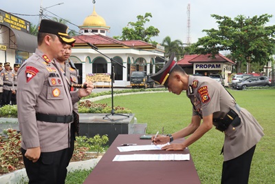 Upacara serah terima jabatan di lingkungan Polres Pelalawan berdasarkan berdasarkan