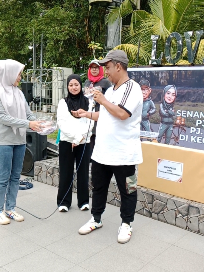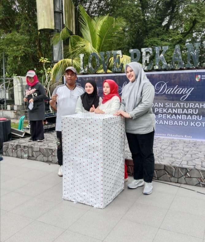Kegiatan ini selain senam,juga memberikan hadiah kepada masyarakat melalui pencabutan nomor undian,kepada pihak donator yang telah membatu kegiatan ini,kami mengucapkan terimakasih dan begitu juga kepada Pj Walikota Pekanbaru beserta istri yang berkenan hadir di acara ini.”ujar Reni
