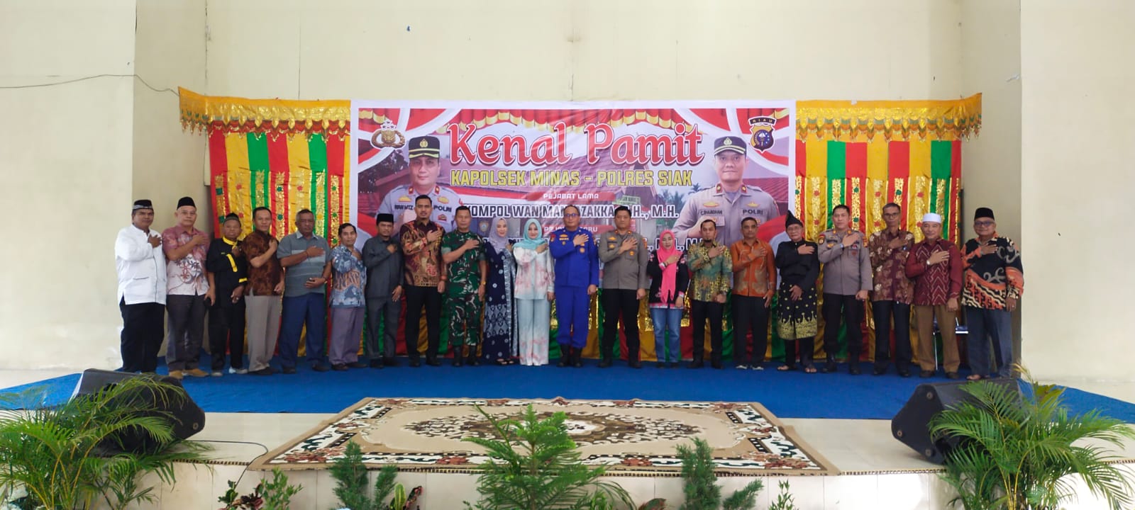 SIAK ,LintasRiauNews. com -– Dalam suasana penuh keakraban, Polsek Minas menggelar acara kenal pamit Kapolsek di Gedung Bathin Djaonang, Kecamatan Minas, pada Sabtu (18/01/2025). Acara ini menandai pergantian kepemimpinan di Polsek Minas, dengan Kompol Carroland Rhamdhani S.H., S.I.K., M.H., M.I.K. resmi menjabat sebagai Kapolsek yang baru menggantikan Kompol Wan Mantazakka S.H., M.H.