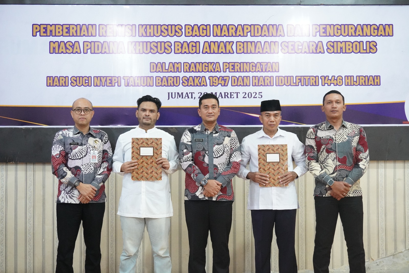 PEKANBARU ,LintasRiauNews. com — Rumah Tahanan (Rutan) Kelas I Pekanbaru turut serta dalam acara penyerahan remisi khusus Hari Raya Idul Fitri 1446 H dan Hari Suci Nyepi Tahun Baru Saka 1947 bagi warga binaan pemasyarakatan. Acara yang berlangsung di Aula Rutan Pekanbaru ini digelar secara simbolis dan diikuti oleh ratusan warga binaan yang mendapatkan hak pengurangan masa pidana, Jumat (28/3).