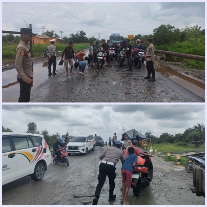 SIAK ,LintasRiauNews.com — Dalam momentum arus balik Lebaran Idulfitri 1446 H, jajaran Polres Siak menunjukkan dedikasi tinggi dengan turun langsung membantu masyarakat dan para pemudik yang terdampak banjir di Jalan Lintas Siak – Buton, tepatnya di Kampung Dosan, Kecamatan Pusako, Kabupaten Siak, khususnya di kawasan Simpang Doral.