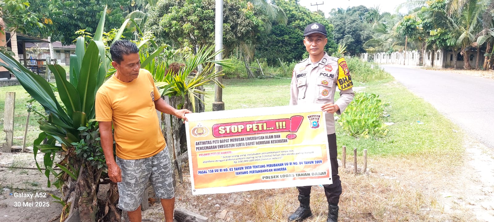 KUANTANSINGINGI,LintasRiauNews.com —Dalam upaya menegakkan hukum dan menjaga kelestarian lingkungan, Kepolisian Sektor Logas Tanah Darat melaksanakan kegiatan sosialisasi serta penyebaran dan penempelan Maklumat Kapolres Kuantan Singingi tentang larangan aktivitas Pertambangan Tanpa Izin (PETI) pada Jumat (30/5/2025).