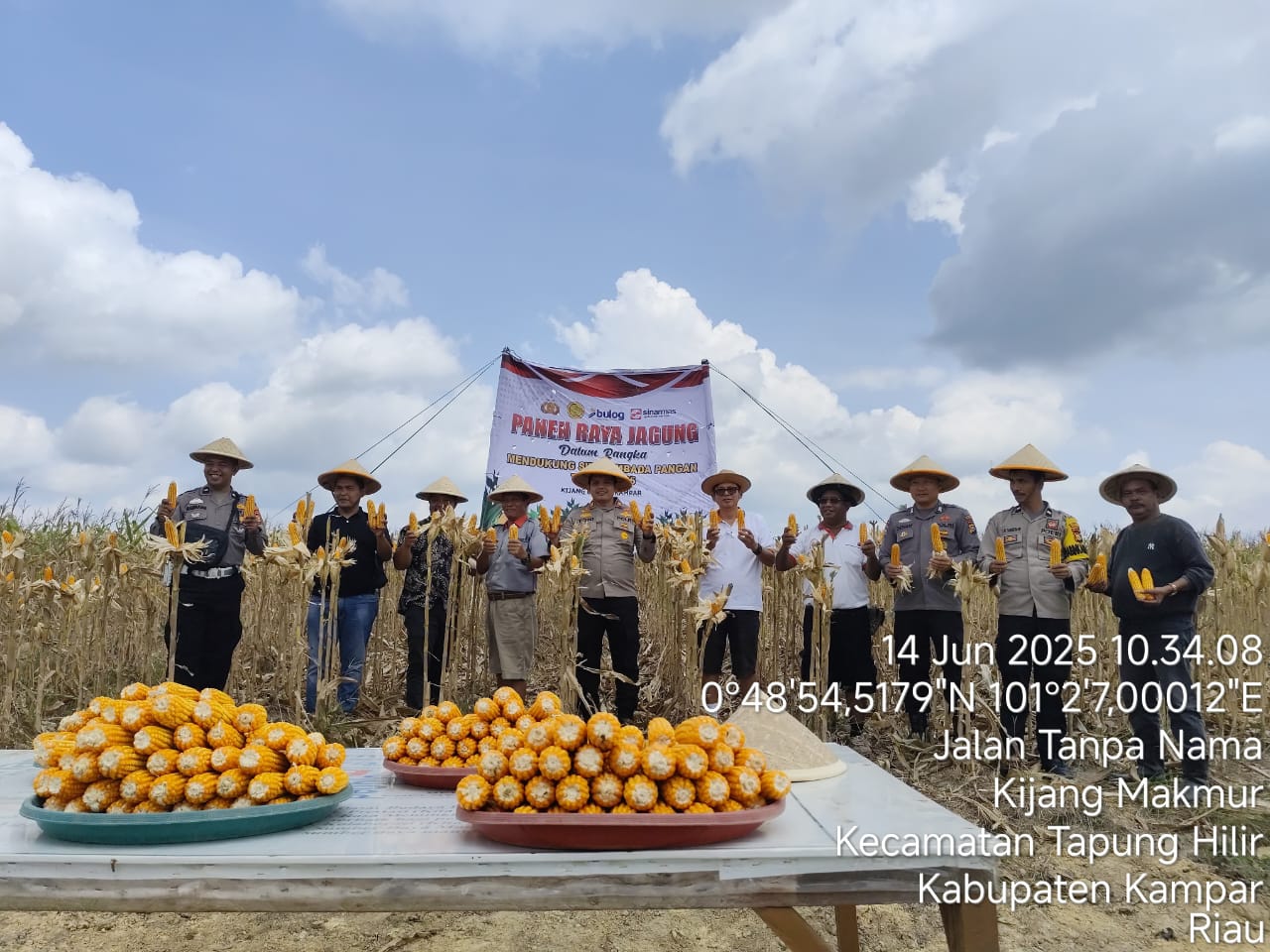 Pada pelaksanaan Panen Raya Jagung, hadir Kapolsek Tapung Hilir AKP TONI SH MH didampingi Ps Kanit Lantas Aipda Ade Bambang, Ps Kanit Binmas Bripka C. Nainggolan dan Bhabinkamtibmas Aipda Tambunan. Sementara itu hadir juga perwakilan perusahaan Perkebunan Sinarmas yang diwakili oleh Region Controller Kampar Inti Bapak H. Ruslan Hasibuan didampingi Manager Kijang Estate (Inti) Bapak Petrus Gelawae dan Manager Kijang Plasma Bapak Dwi serta Kepala Desa Kijang Makmur, Bapak Jadid Rambe dan tokoh masyarakat setempat, melaksanakan Panen Raya Jagung di areal seluas 3 Ha dengan estimasi hasil panen diperkirakan kurang lebih sekitar 12 ton.