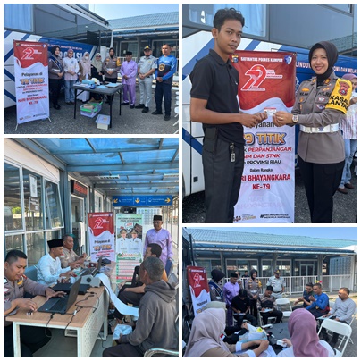 KAMPAR ,LintasRiauNews.com — Dalam rangka memperingati Hari Bhayangkara ke-79, Satuan Lalu Lintas (Satlantas) Polres Kampar menggelar Gerai Pelayanan Publik di Terminal Bus Bangkinang Kecamatan Bangkinang Kota, Kabupaten Kampar, pada Sabtu (14/6/2025) pukul 09.00 WIB.
