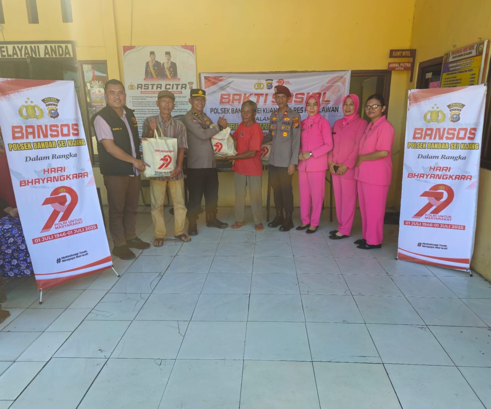 PELALAWAN ,LintasRiauNews.com — Dalam rangka menyambutnHari Ulang Tahun (HUT) Bhayangkara ke-79 Tahun 2025, Polsek Bandar Sei Kijang menggelar penyaluran bantuan sosial (bansos) kepada masyarakat kurang mampu. Kegiatan ini dilaksanakan di Mako Polsek Bandar Sei Kijang Sabtu (21/6/ 2025) siang