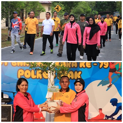 Dalam sambutannya, Kapolres Siak AKBP Eka Ariandy Putra menyampaikan bahwa kegiatan olahraga bersama ini merupakan bagian dari rangkaian nasional dalam menyambut Hari Bhayangkara ke-79. Ia menegaskan bahwa kegiatan tersebut bukan sekadar seremonial, namun sebagai bentuk nyata bahwa Polri hadir dan bersinergi untuk masyarakat.