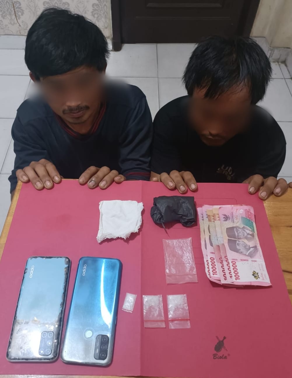 Sekira pukul 02.00 WIB, Kamis (3/7/2025), tim melakukan penggerebekan di kontrakan yang dimaksud dan berhasil mengamankan tersangka pertama, DK (34), warga Kelurahan Kemuning Muda, Kecamatan Bungaraya. Dari hasil penggeledahan di dalam kamar kontrakan, ditemukan dua paket narkotika jenis shabu yang tergeletak di lantai.