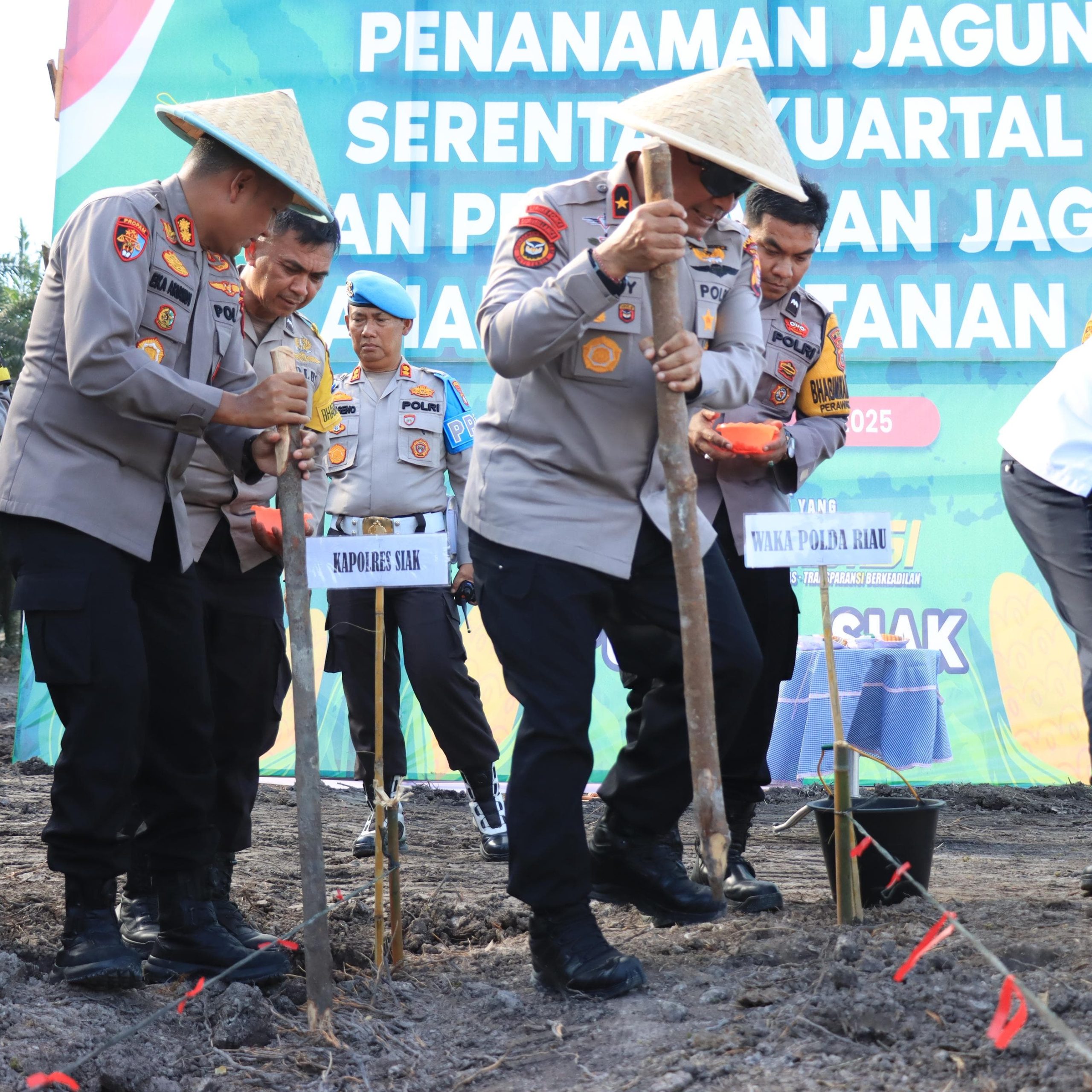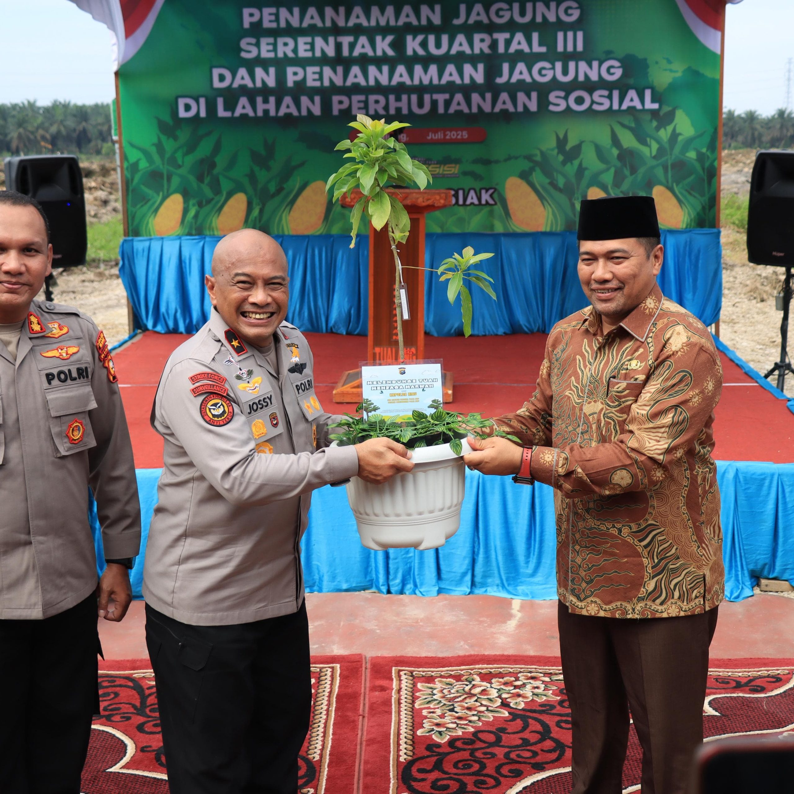 PERAWANG,LintasRiauNews.com — Dalam upaya memperkuat ketahanan pangan nasional, Wakapolda Riau BRIGJEN POL JOSSY KUSUMO, S.H., M.Han memimpin kegiatan Penanaman Jagung Serentak Kuartal III dan Penanaman Jagung di Lahan Perhutanan Sosial, yang dilaksanakan di areal lahan HGU PT. Surya Inti Raya (SIR), Kampung Maredan Barat, Kecamatan Tualang, Kabupaten Siak, Rabu (9/7/2024) pukul 13.30 WIB.
