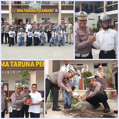 PEKANBARU ,LintasRiauNews.com – Direktorat Lalu Lintas Polda Riau terus menunjukkan komitmennya dalam membentuk generasi yang sadar akan keselamatan berlalu lintas dan peduli terhadap lingkungan. Hal ini diwujudkan melalui kegiatan Police Goes To School yang digelar di Sekolah Menengah Atas Taruna Mandiri Pekanbaru, dirangkaikan dengan program Green Policing serta pemberian helm kepada pelajar dan guru.