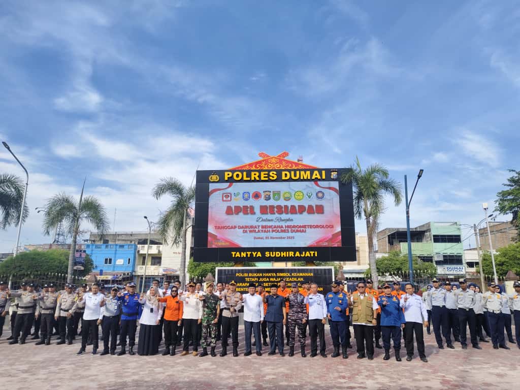 DUMAI,LintasRiauNews.com –Polres Dumai menggelar apel kesiapan tanggap darurat cuaca ekstrem dan bencana hidrometeorologi di Mapolres Dumai, Rabu (5/November 2025). Apel ini bertujuan untuk memastikan kesiapan personel dan peralatan dalam menghadapi potensi bencana alam di wilayah tersebut.