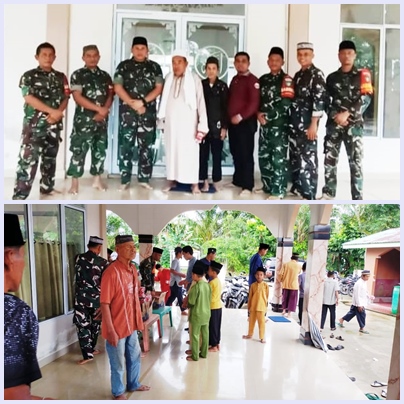 Hadir dalam kegiatan jum,at berkah Danramil 03/SS Kapten Inf Hendra Darma, Tokoh agama Kelurahan Basilam Baru H,Maknur,