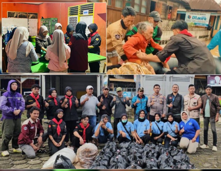 SOLOK,LintasRiauNews.com –  Unit Kegiatan Mahasiswa (UKM) Gerakan Mahasiswa Pecinta Alam (Gempa) Universitas Mahaputra Muhammad Yamin (UMMY) Solok dan Badan Badan Eksekutif Mahasiswa (BEM) Fakultas Hukum UMMY Solok menurunkan relawan kemanusiaan untuk membantu penanggulangan dampak bencana banjir yang melanda Kota Solok dan Kabupaten Solok, Jumat (28/11/2025). Gempa UMMY dan FH UMMY menggandeng dua Satuan Pelayanan Pemenuhan Gizi (SPPG), yakni SPPG KTK dan SPPG Kampung Jawa, dalam penyaluran paket bantuan ke sejumlah titik di Nagari Kotosani, Selayo, Kotobaru, Saniang Baka, dan sejumlah daerah lainnya.
