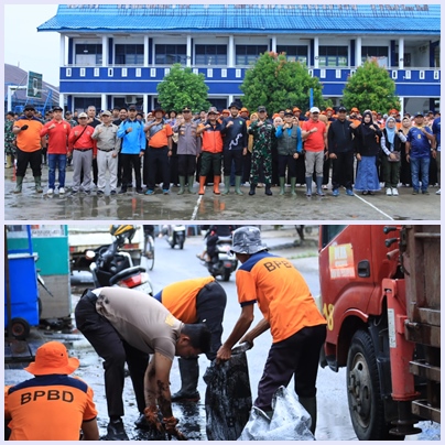 Dalam kegiatan lanjutan, seluruh peserta apel—mulai dari personel TNI–Polri, BPBD, OPD teknis, hingga pelajar—terjun serentak membersihkan parit dan saluran air. Selain itu, sejumlah titik rawan banjir diidentifikasi untuk penanganan teknis lebih lanjut oleh dinas terkait.