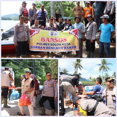 SOLOK KOTA,LintasRiauNews.com –   Kapolres Solok Kota AKBP Mas’ud Ahmad bersama jajaran kembali melakukan aksi kemanusiaan dengan mendistribusikan bantuan sosial (bansos) kepada warga terdampak banjir. Uniknya, pendistribusian bantuan kali ini dilakukan melalui jalur Danau Singkarak akibat akses darat yang masih terputus pascabanjir.