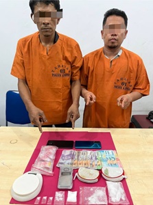 Dari kedua pelaku berhasil kita amankan sejumlah barang bukti berupa, 7 paket sabu yang dibungkus plastik bening, 5 ball plastik Klip, 2 timbangan digital, 2 dompet warna abu-abu, 2 unit HP dan uang tunai Rp 510 ribu.