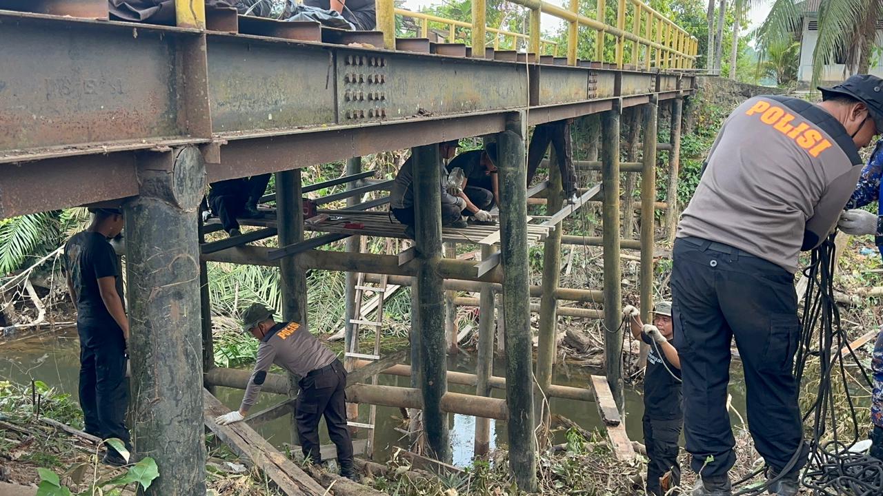 TAMBANG ,LintasRiauNews.com – Renovasi jembatan di Desa Gobah Kec. Tambang terus menunjukkan perkembangan positif. Memasuki hari ketiga, Sabtu (31/01/2026), Tim Rehab Jembatan Sat Brimob Polda Riau yang dipimpin oleh IPDA Bai Ibrahim fokus pada pembongkaran lantai kayu rusak, pembersihan rel utama, pengelasan besi penyangga, serta pembersihan pondasi tiang jembatan.