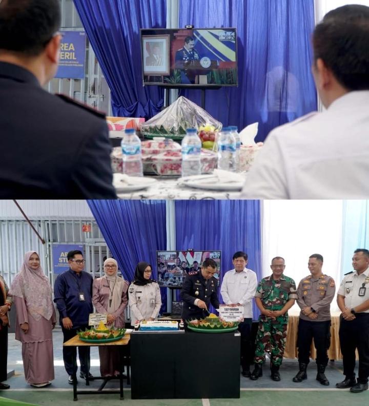 LintasRiauNews.com ,DUMAI —Rumah Tahanan Negara (Rutan) Kelas IIB Dumai menggelar kegiatan tasyakuran dalam rangka memperingati Hari Bakti Pemasyarakatan (HBP) ke-62, Senin (27/4). Kegiatan berlangsung secara hybrid melalui Zoom Meeting dan diikuti oleh seluruh Unit Pelaksana Teknis (UPT) Pemasyarakatan di Indonesia.